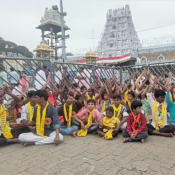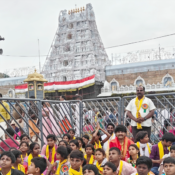 With immense joy and gratitude, we had the blessed Darshan of Lord Sri Venkateswara Swamy at Tirumala – a sacred moment of pride and devotion. This yatra was undertaken by 50 Divyangjan devotees and volunteers from Kuppam Constituency, and their hearts were filled with divine peace and blessings.