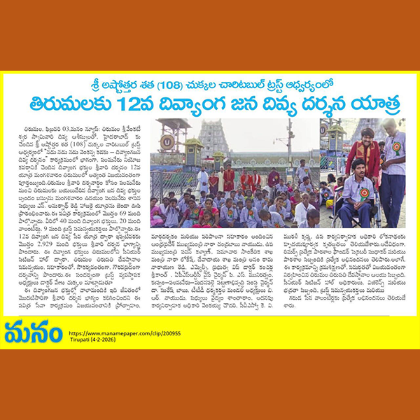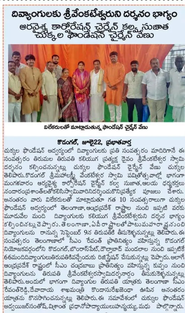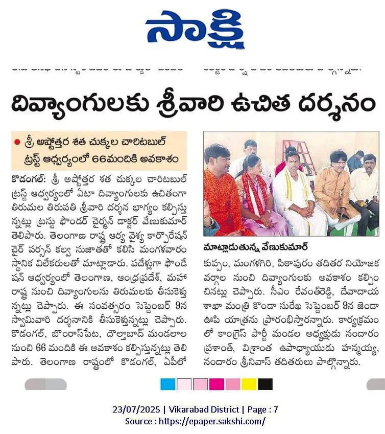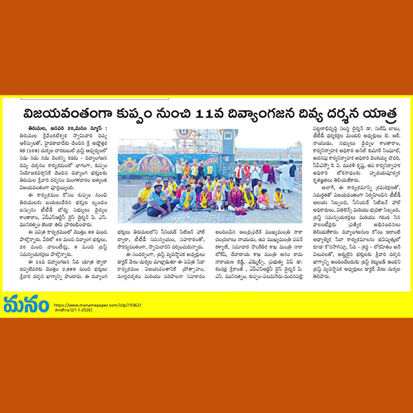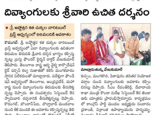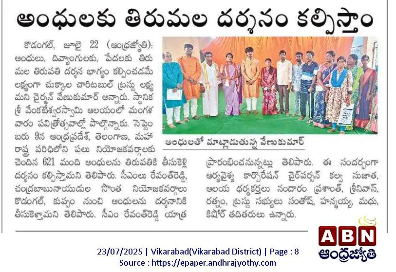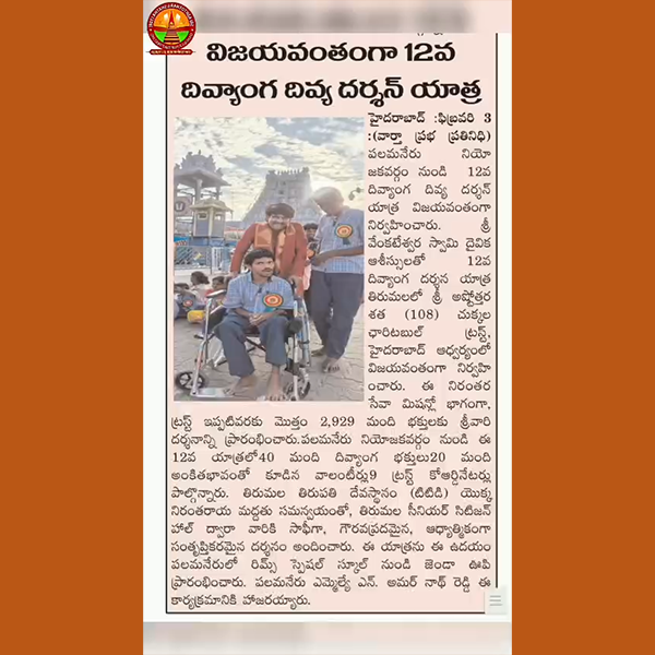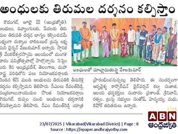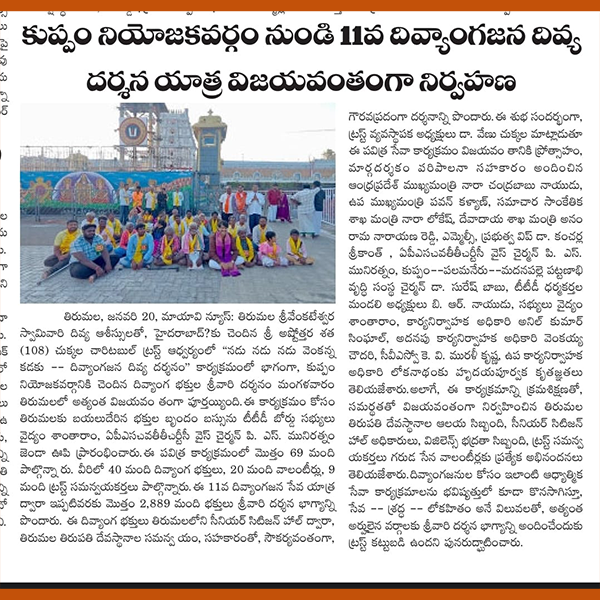 అభాగ్యులకు వెంకన్న దర్శనభాగ్యం Article Printed @ AndhraJyothi Sunday Book on 26th January 2025